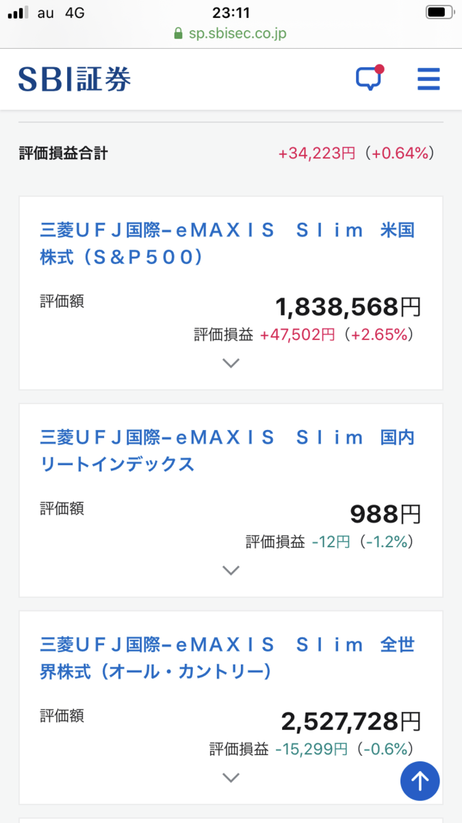 slimオールカントリー10000円、slim米国株式S&P500を5000円、slim先進国を4000円、slim国内REITを500円、毎日つみたてしています。