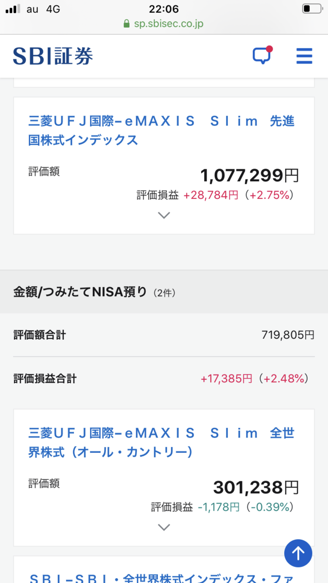 最近、書いてなかったですが、もちろん、つみたてNISAも毎日つみたてしています。今年はslimオールカントリーを1600円づつです。