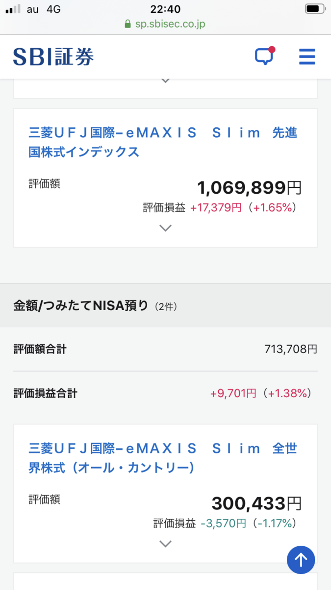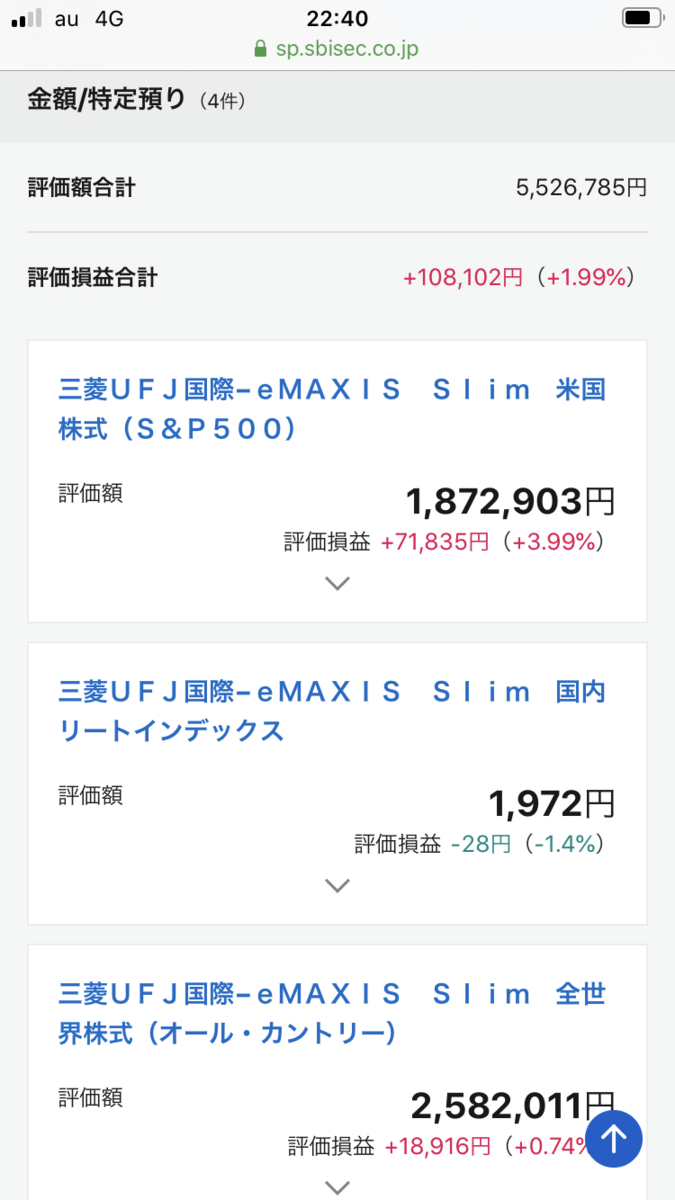特定口座でslimオールカントリー10000円、slim米国株式S&P500を5000円、slim先進国4000円、slim国内REIT500、毎日つみたてしています。