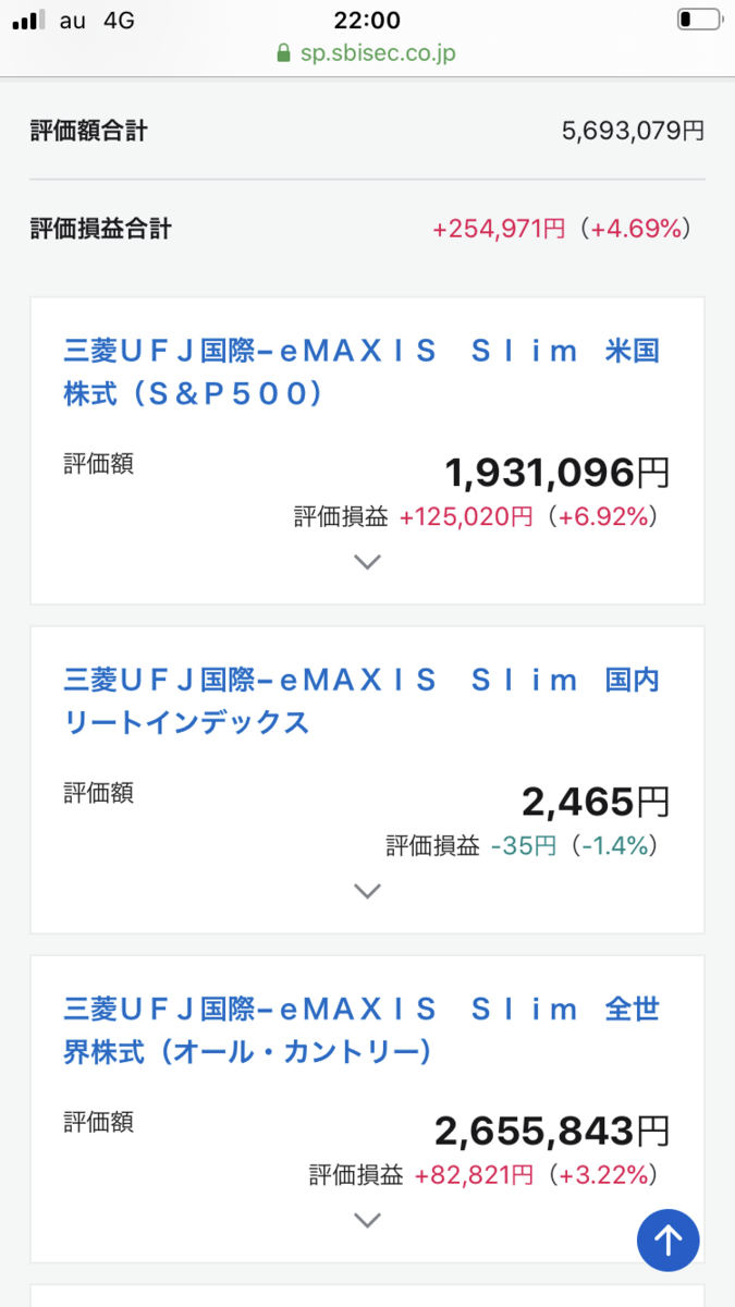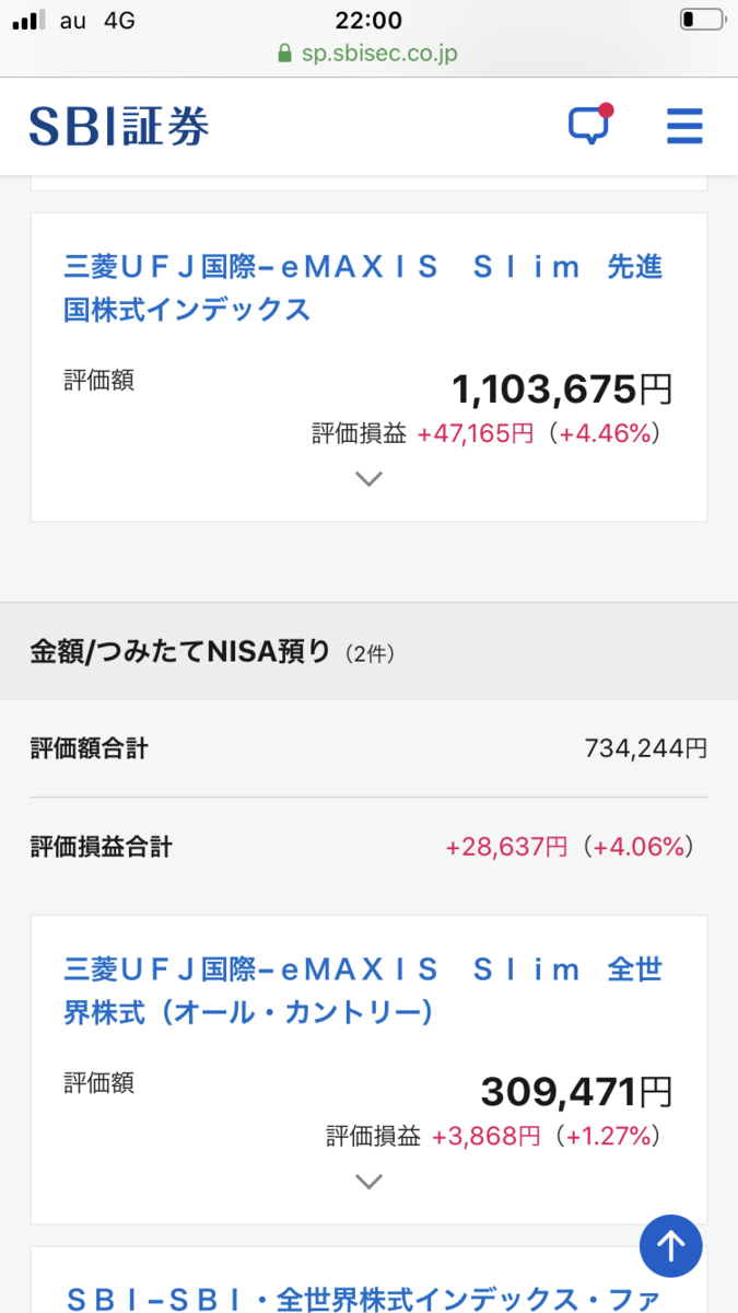 今は、特定口座で、毎日slimオールカントリー10000円、slim S&P500を5000円、slim先進国4000円、slim国内REIT500円をつみたてしています。