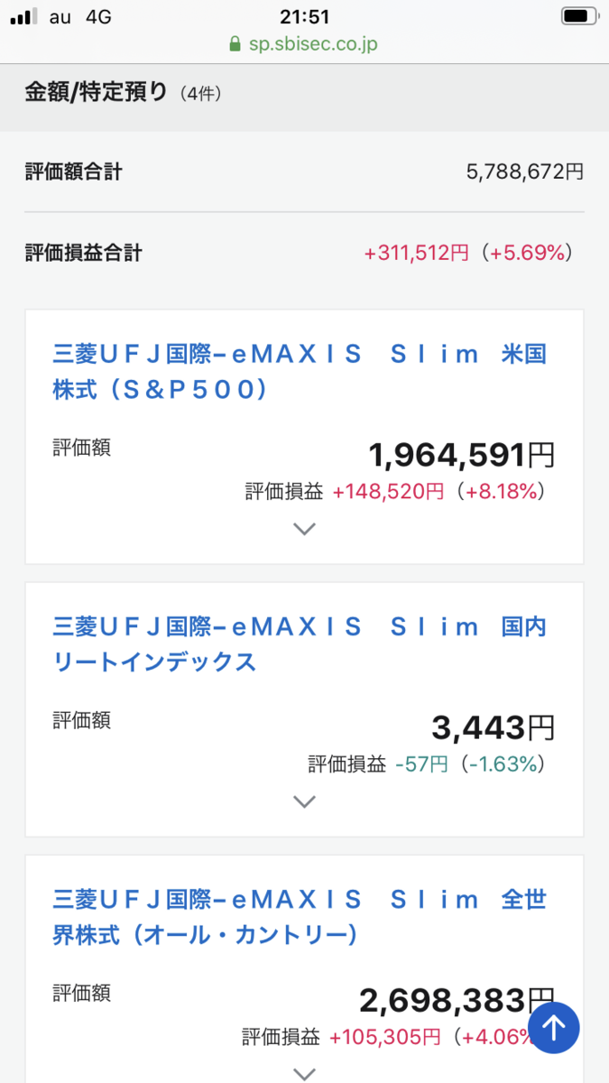 こちらが現在の投資信託の画面です。