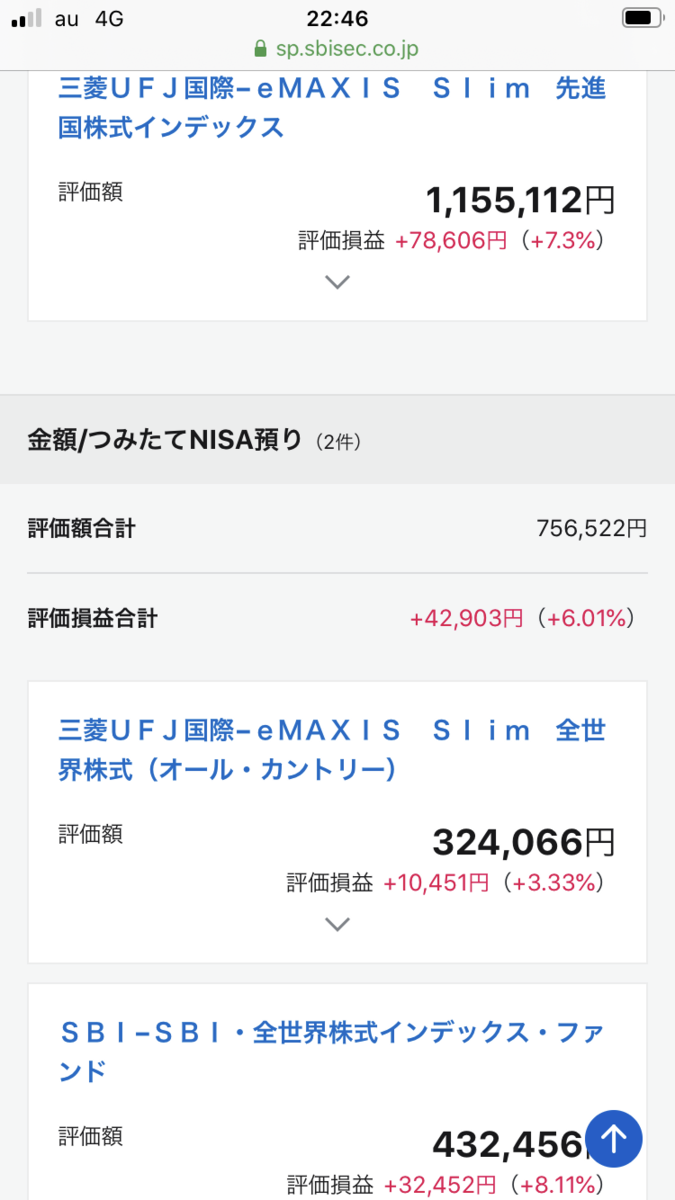 こちらが現在の投資信託の画面です。