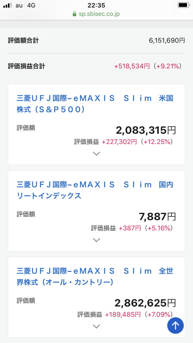 きのうは画面を貼りませんでしたが、きのうより、国内REIT以外はやや下げているものの、なかなかの含み益も出ています。
