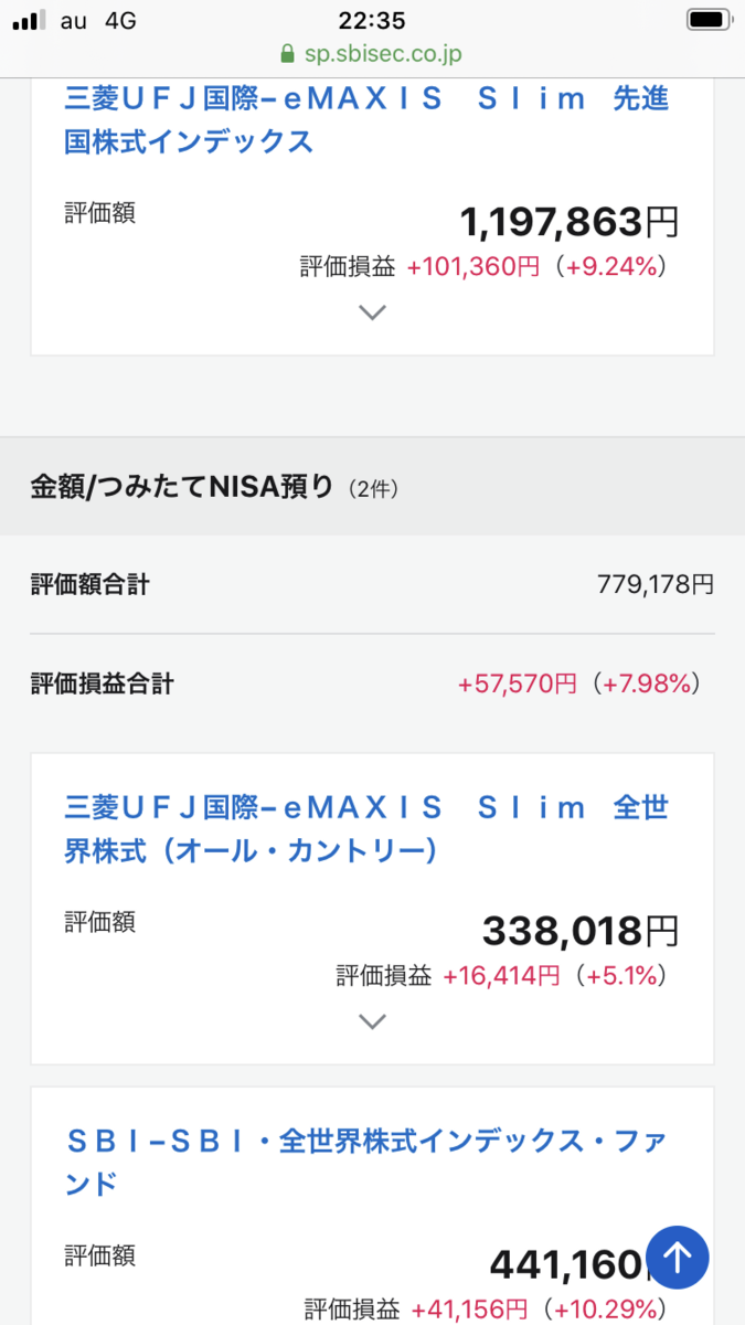 こちらが現在の投資信託の画面です。