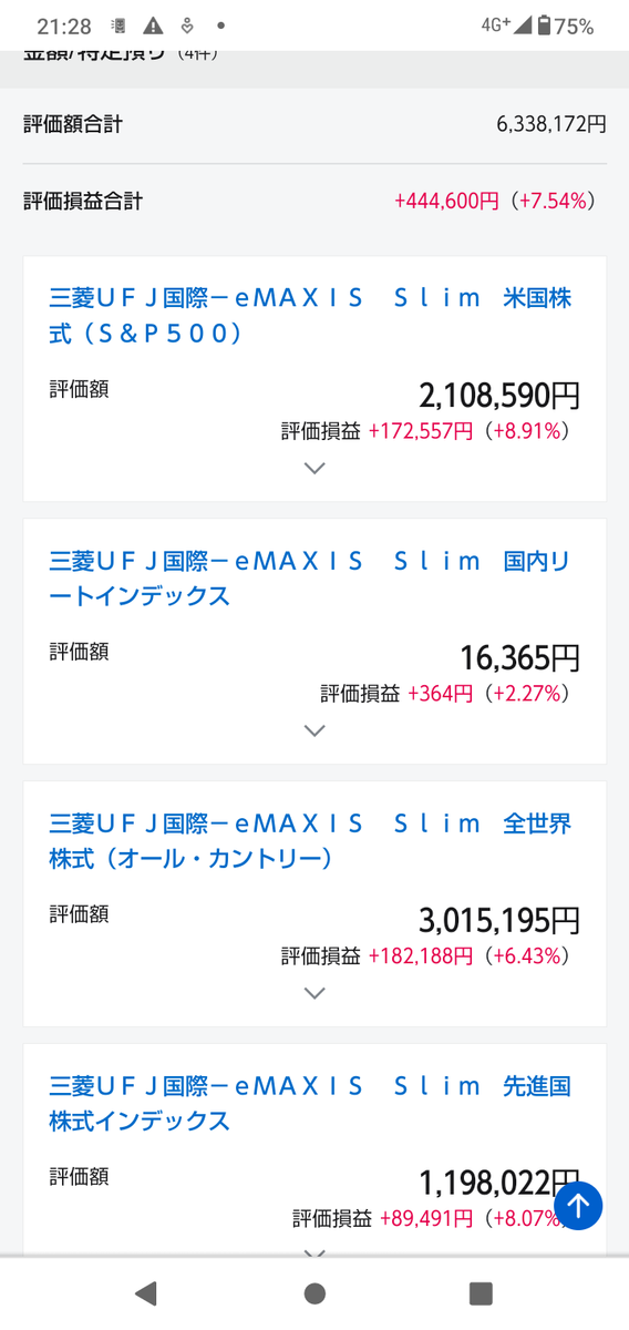 こちらが現在の特定口座の投資信託です。