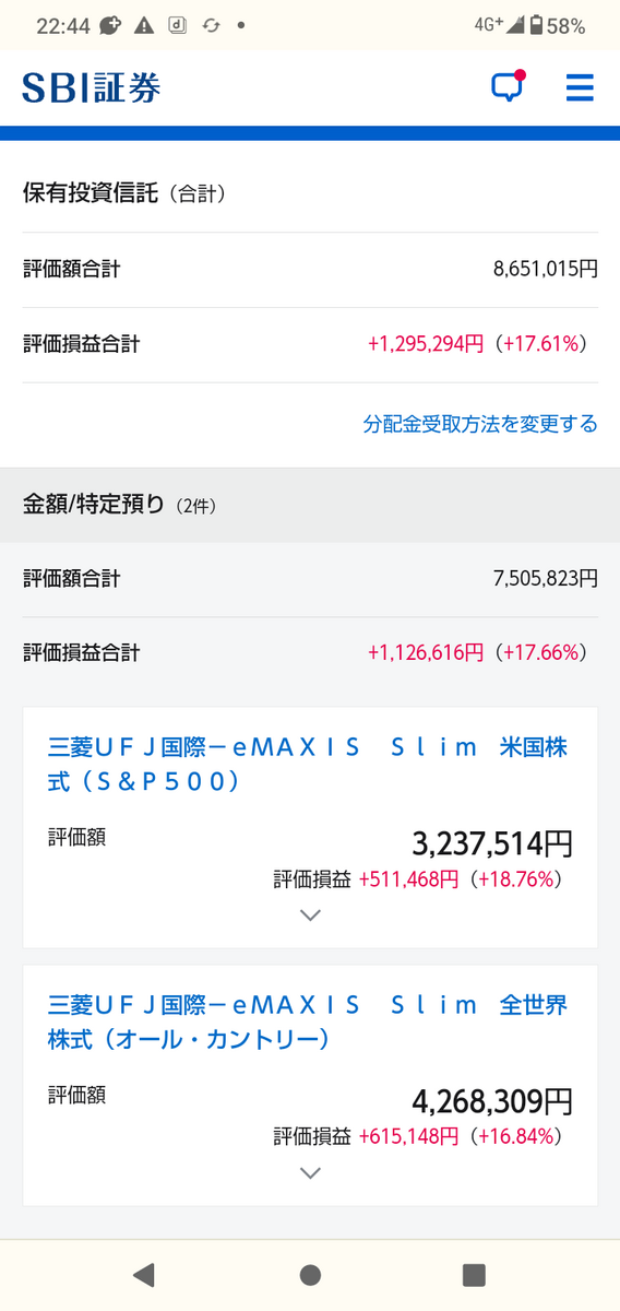 特定口座でslim米国株式S&P500とオルカンを毎日3000円づつ、つみたてしています。