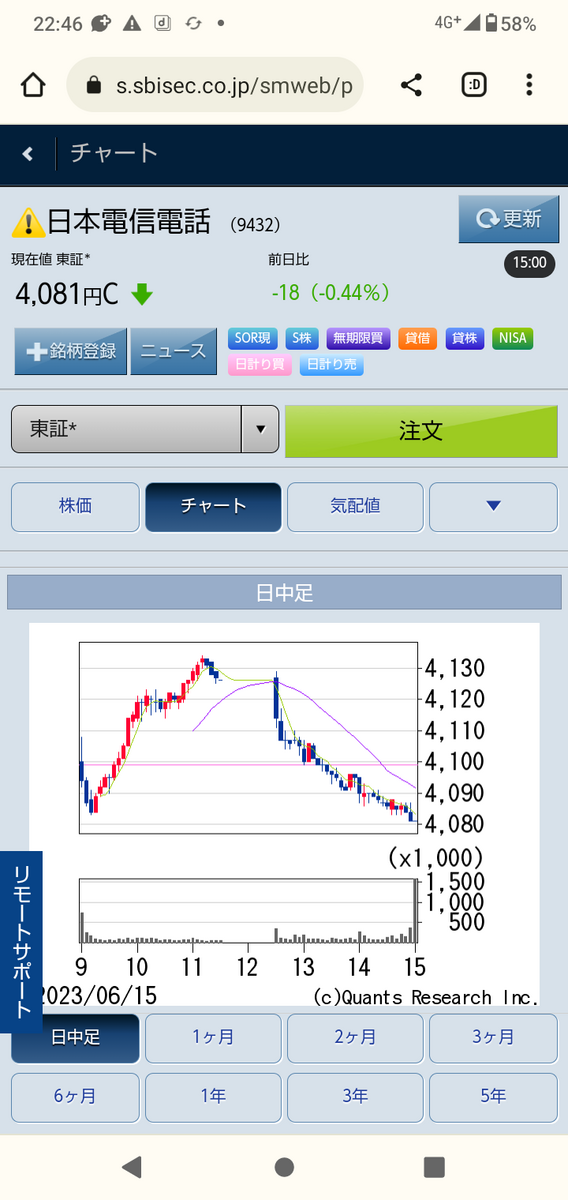日経平均がこんなにも爆上げしている中で、NTT株は、4100円前後をひたすらウロウロし、たまに上がる日がありますが、その後、数日かけて、ダラダラ下がります。
