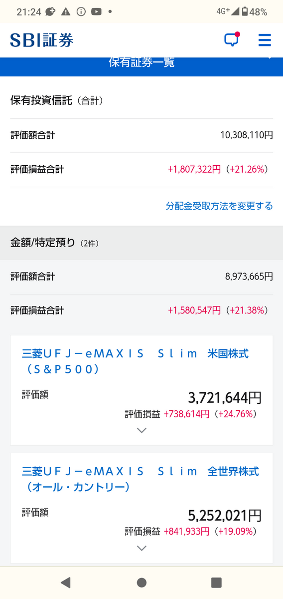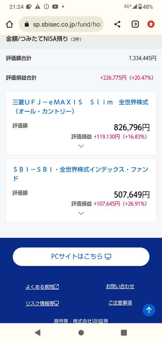こちらが現在の私の投資信託の画面です。